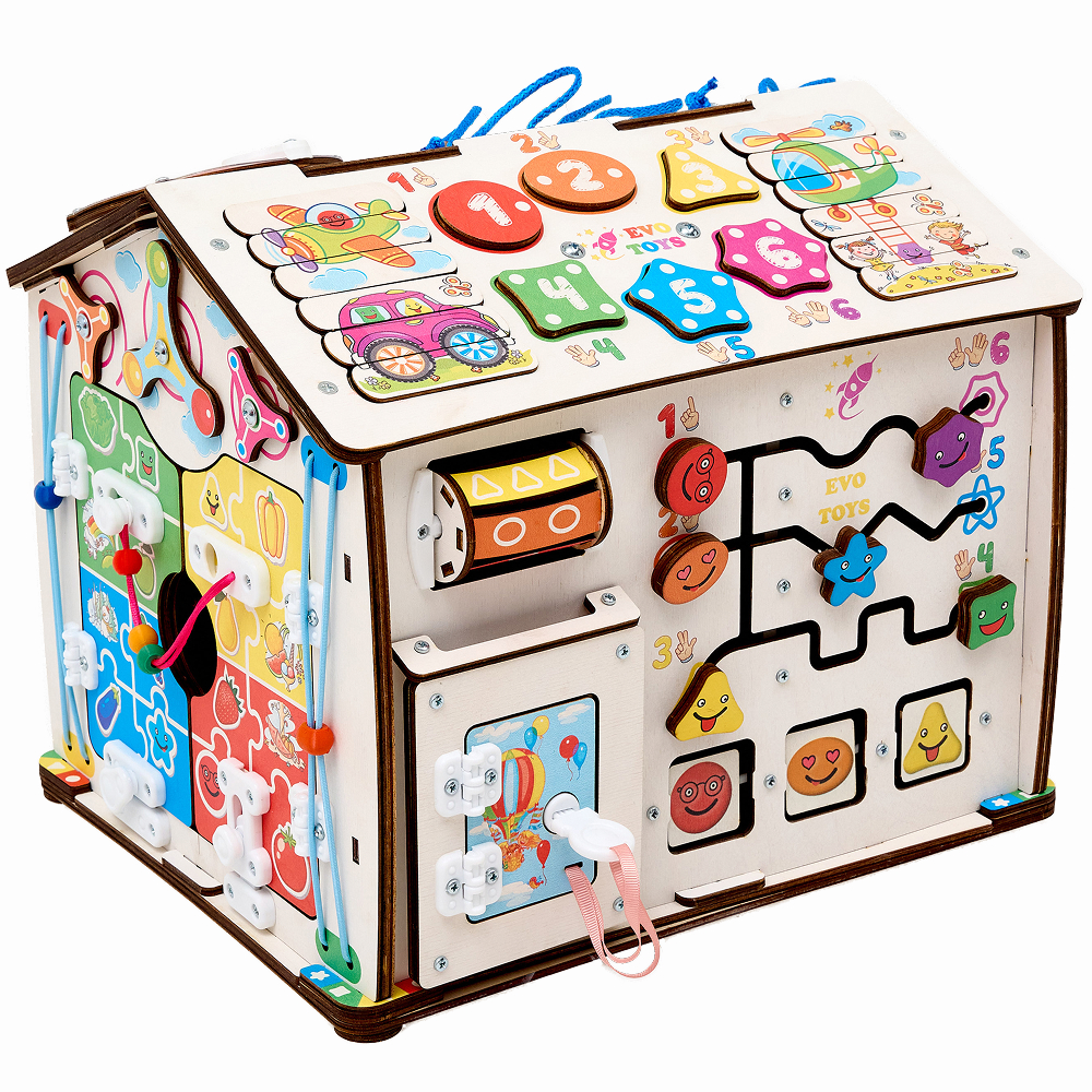 Этот большой и яркий бизидом с веселыми смайлами не только обучает малыша полезному, но и каждый день дарит ему отличное настроение! А еще бизиборд универсальный: его можно смело дарить как годовалой крохе, так и ребенку 4-5 лет.